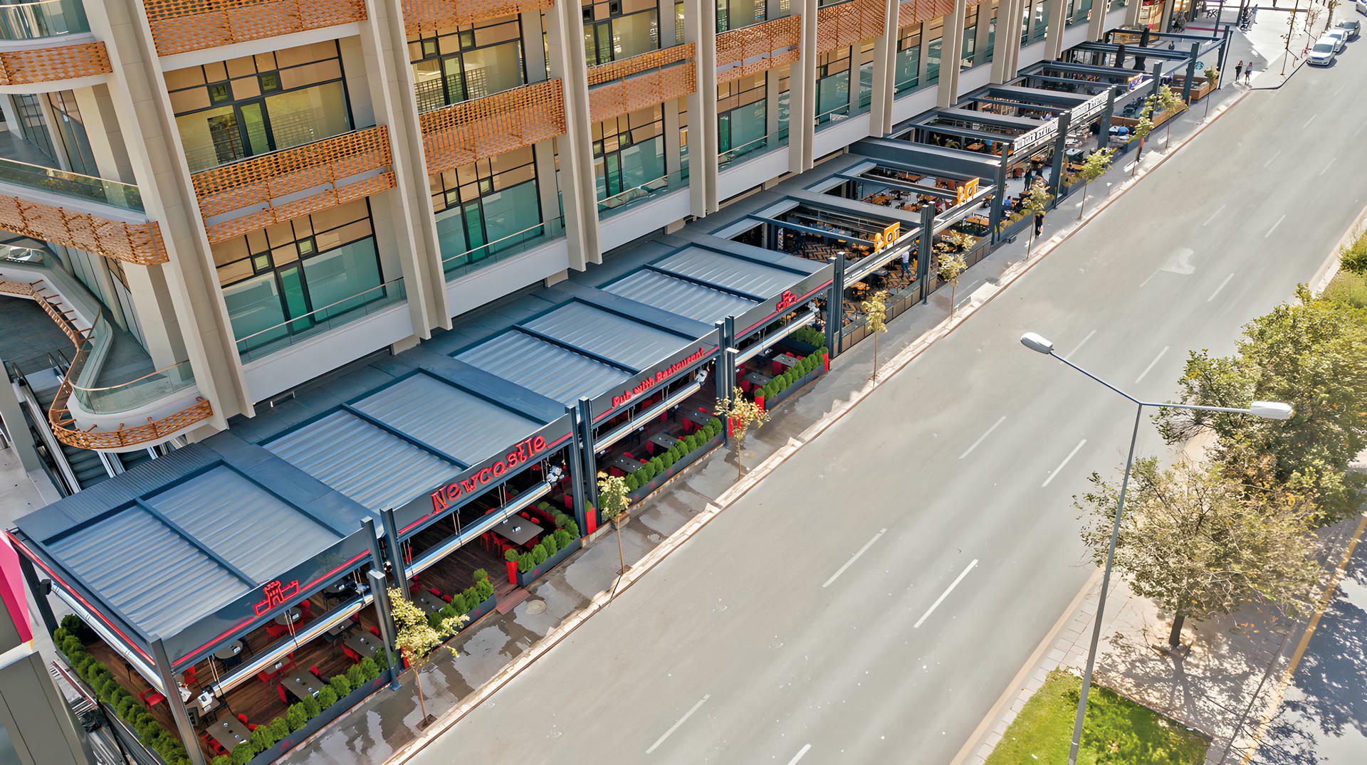 Za razliku od klasičnih sistema, Emerald ne zahteva nagib, što omogućava maksimalnu iskoristivost prostora ispod tende i širu namenu u različitim eksterijerima.