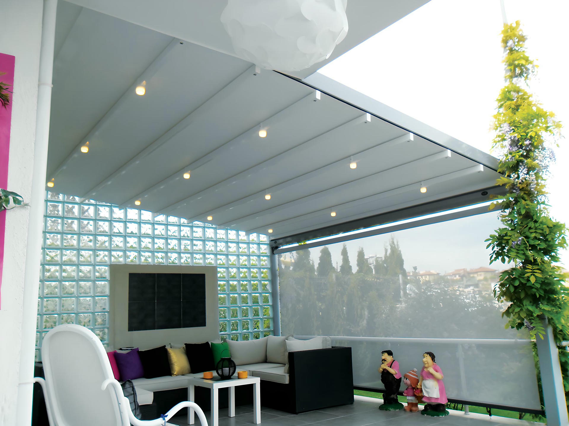 Bočne strane sistema mogu biti opremljene VertiGlass automatskim vertikalnim staklenim panelima, čime se otvoreni prostor pretvara u zatvorenu, prijatnu i višenamensku celinu — savršenu za korišćenje u sva četiri godišnja doba.