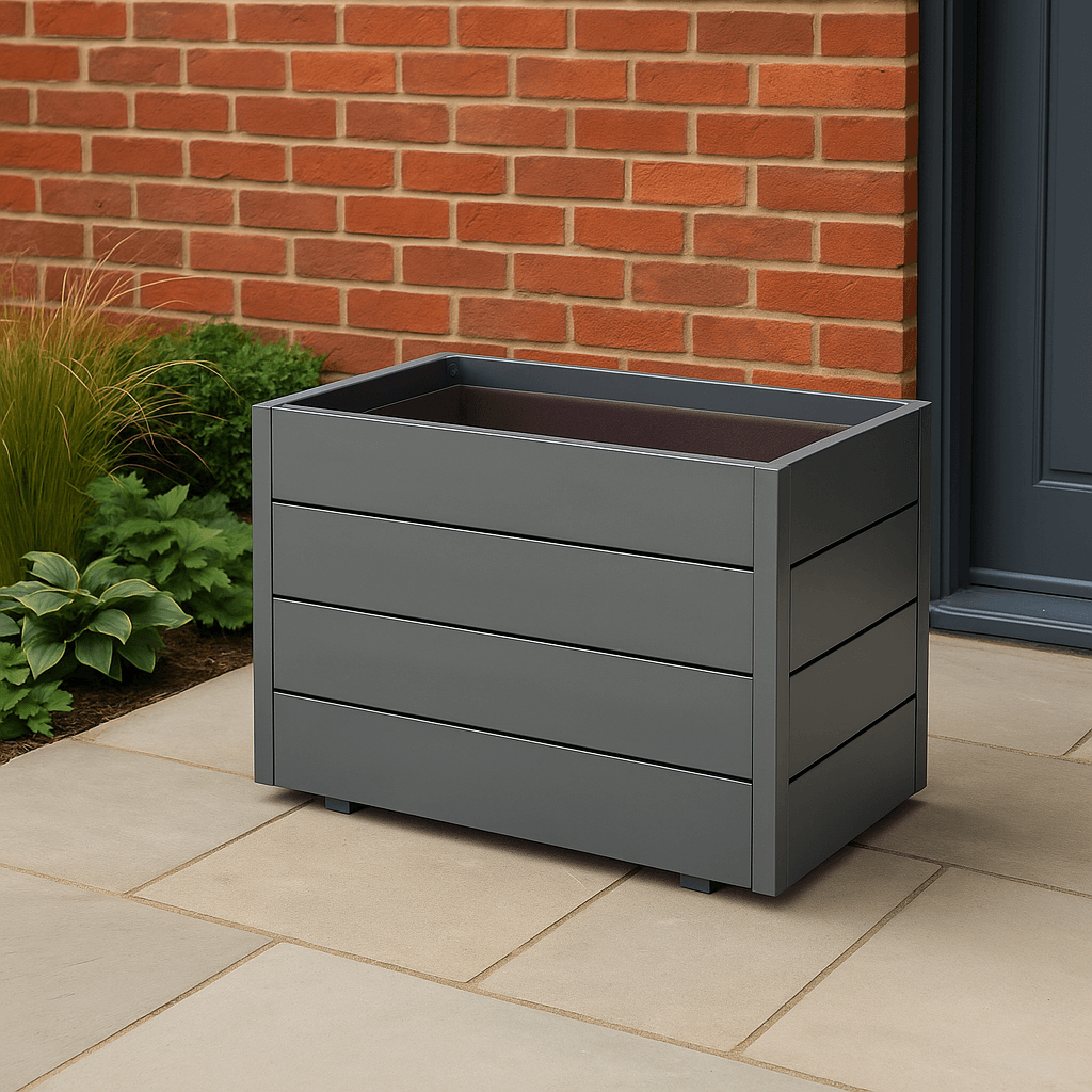 Sa čistim, horizontalnim linijama i mat tamnosivom završnom obradom, ovaj model odiše savremenim minimalizmom i lako se uklapa u moderne terase, dvorišta i baštenske prostore.